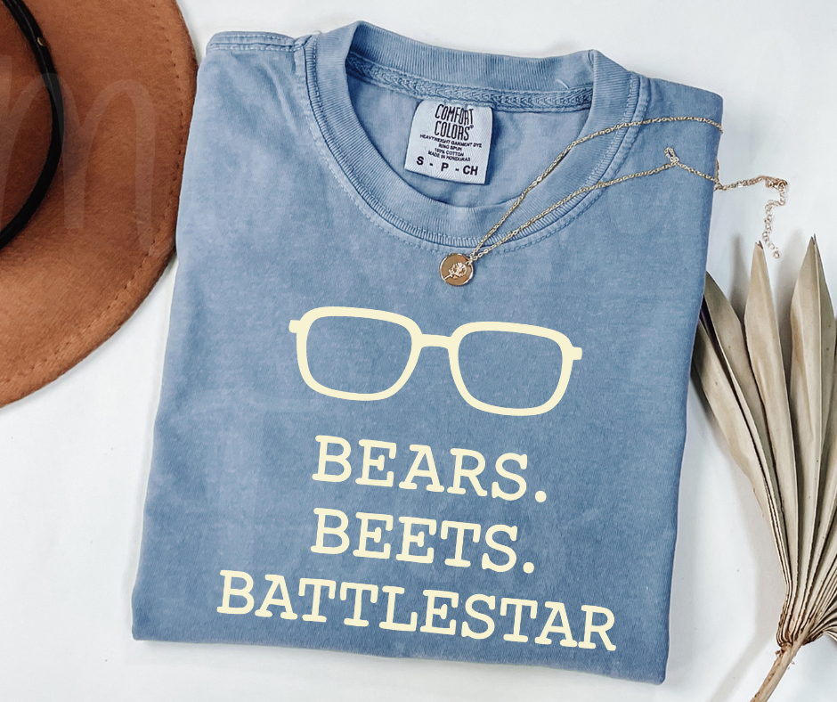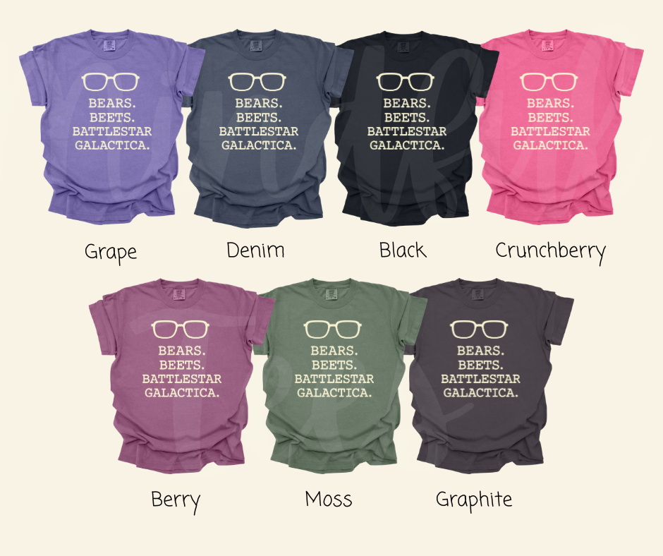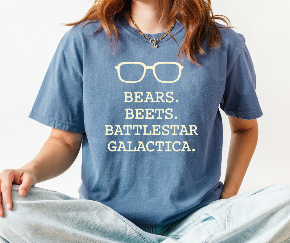 "Beers, Beets, Battelstar Galactica" Sarcastic Design The Office Inspired Unisex heavyweight t-shirt